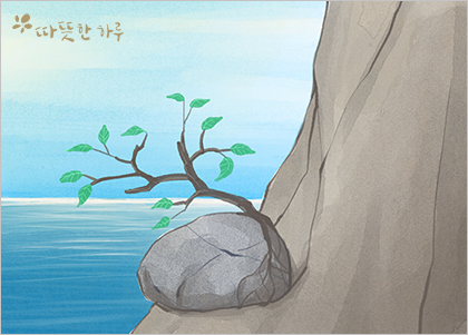 바위 틈에서 푸른 묘목이 돋아났다.