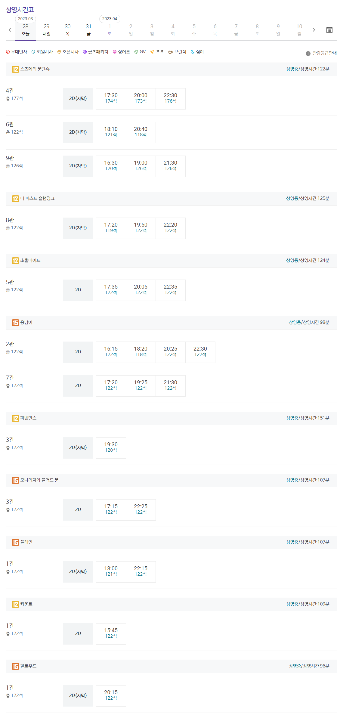 모든 극장의 디지털 프로젝션 시스템, 사실적인 3D 프레젠테이션(가볍고 편안한 안경) 소파(페어 시트) 및 소파(킹 시트)는 2019년 리노베이션을 통해 장착됩니다. 없이 “깨끗한 영화관”