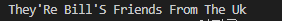 문장 = “그들은 영국에서 온 Bill의 친구입니다.”.제목()